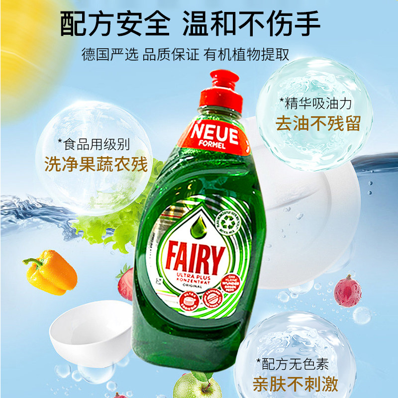 德国进口Fairy食品级浓缩洗洁精洗碗液不伤手家用餐具果蔬洗涤剂
