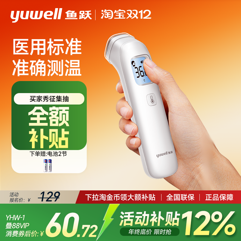 鱼跃婴儿体温枪红外线电子温度计家用医用老人精准人测额温YHW-1
