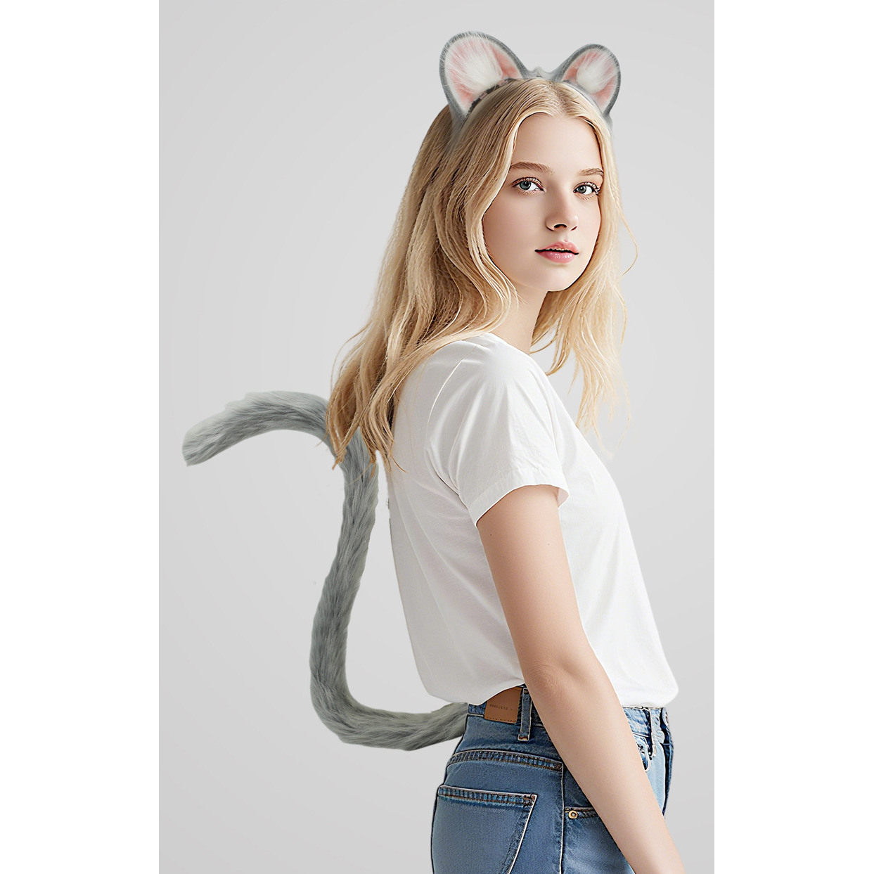 万圣节兽耳鼠耳朵发箍毛绒cos鼠耳道具洛丽塔jk仓鼠耳朵尾巴套装