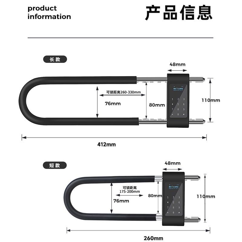 推荐理由:指纹u型锁办公室玻璃门密码锁公司店铺店面智能U形插锁电子挂锁