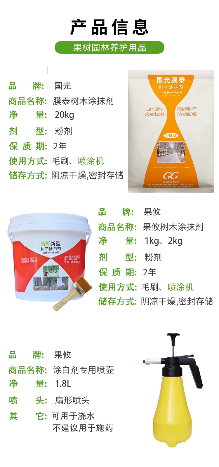 推荐理由:果攸国光树木涂白剂膜泰 大树果树树干糊涂膜涂白粉可机器喷涂