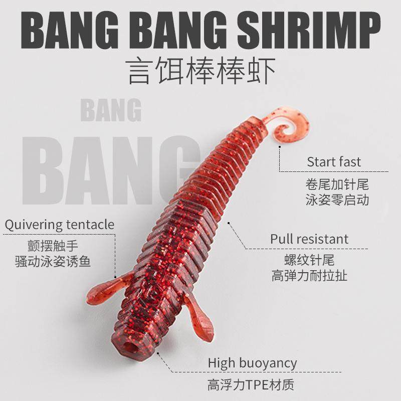 推荐理由:言饵浮水棒棒虾螺纹卷尾路亚饵黑坑鲈鱼鳜鱼内德虾棒棒虫虾型饵