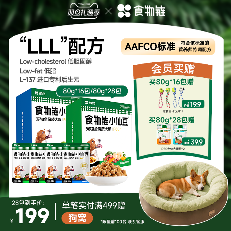 【LLL配方】食物链小仙豆狗粮低脂低胆固醇全价犬主食湿粮狗零食