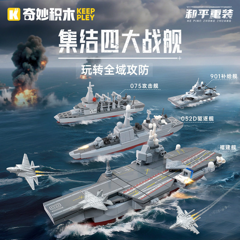 奇妙积木 和平重装 军舰 福建舰 驱逐舰 航空母舰 收藏模型摆件
