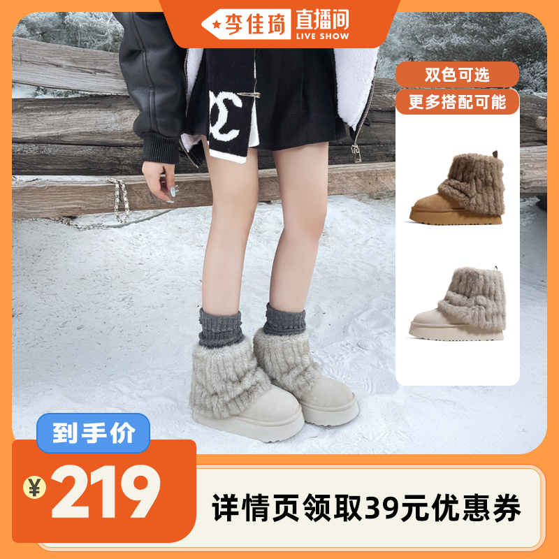【李佳琦直播间】卡米高女款袜套毛绒雪地靴