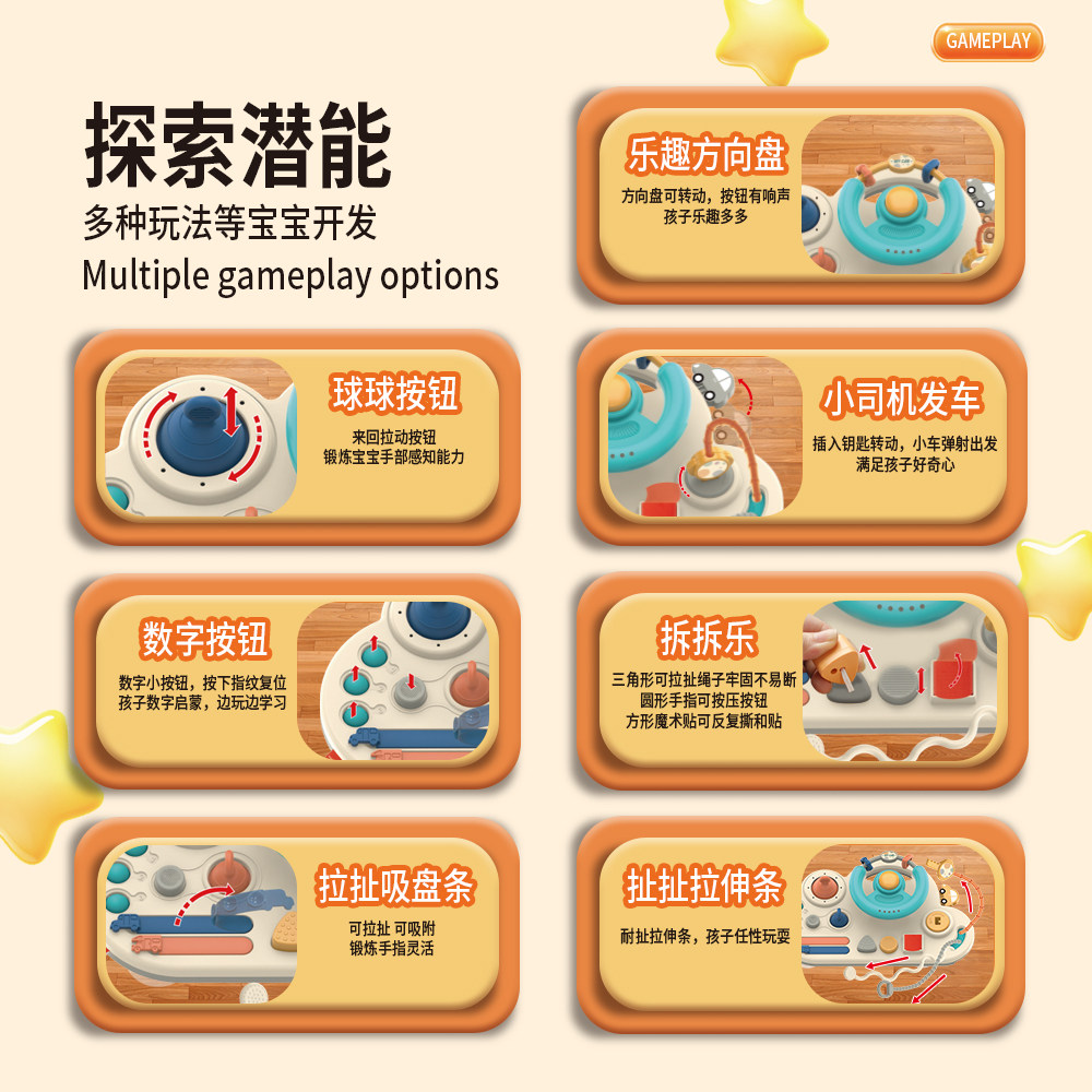 婴儿车方向盘推车无灯光忙碌板蒙氏早教益智宝宝10个月可啃咬玩具
