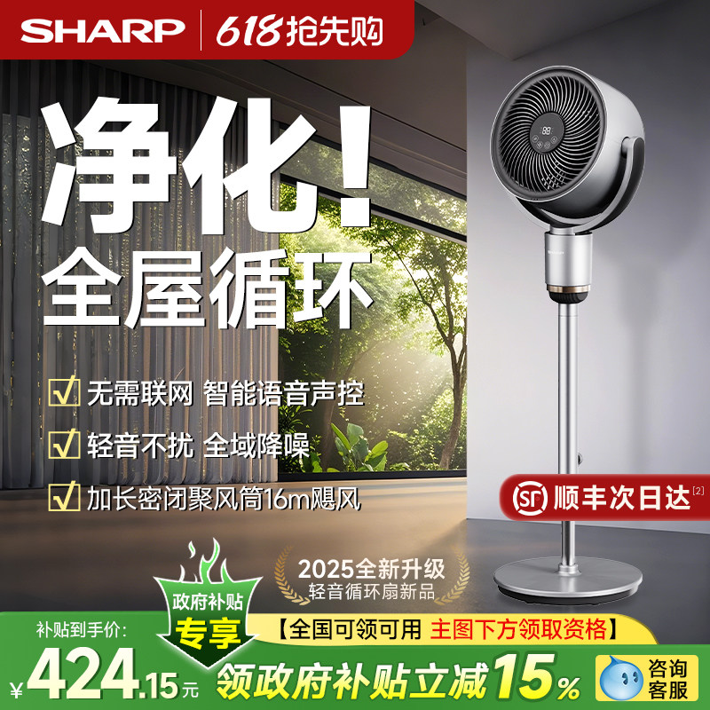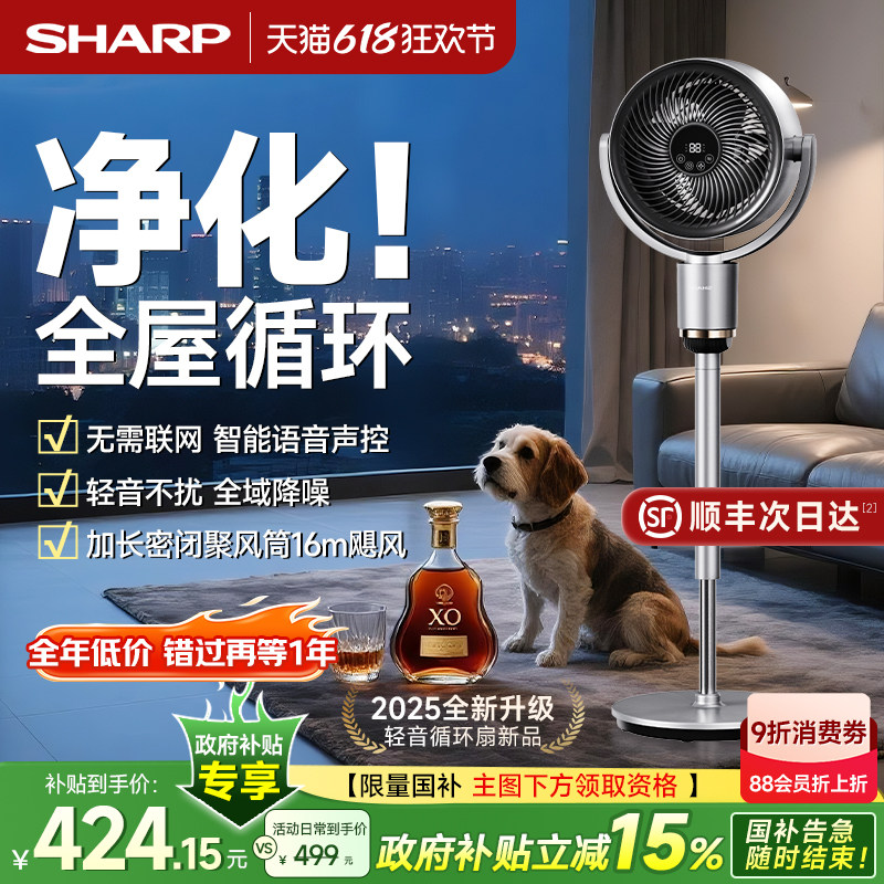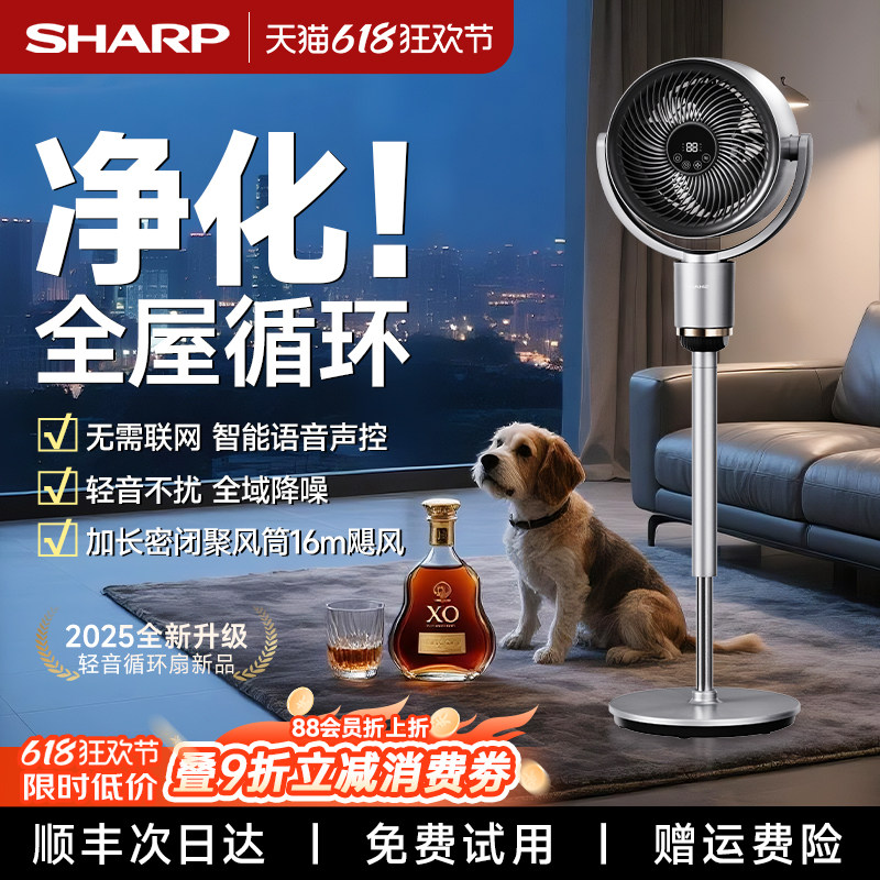 夏普轻音空气循环扇落地扇2025新款电风扇遥控语音静家用智能电扇
