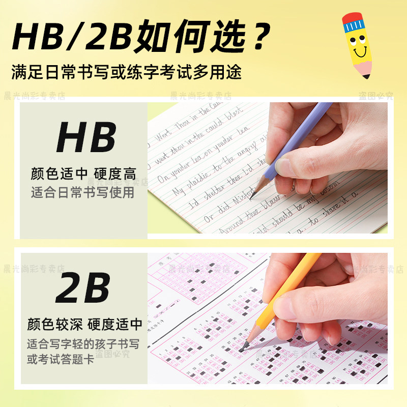 推荐理由:晨光撞色铅笔小学生一年级专用安全无毒刻字彩色笔杆2b铅笔hb二年级学生考试专用儿童幼儿铅笔高端学习用品