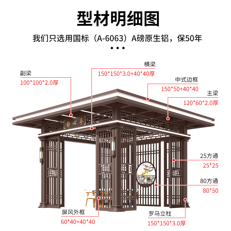 铝合金遮阳雨棚别墅露台楼顶天台门头雨篷户外防晒隔热新中式凉亭
