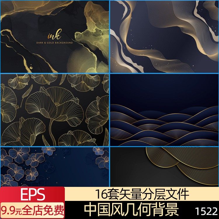 中国风背景矢量图片渐变金色线条花纹线性几何传统树叶ai设计素材