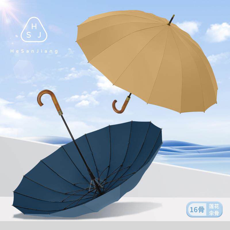 何伞匠16骨莲花骨直杆伞实木弯柄加大伞面抗强风防渗透长柄商务伞