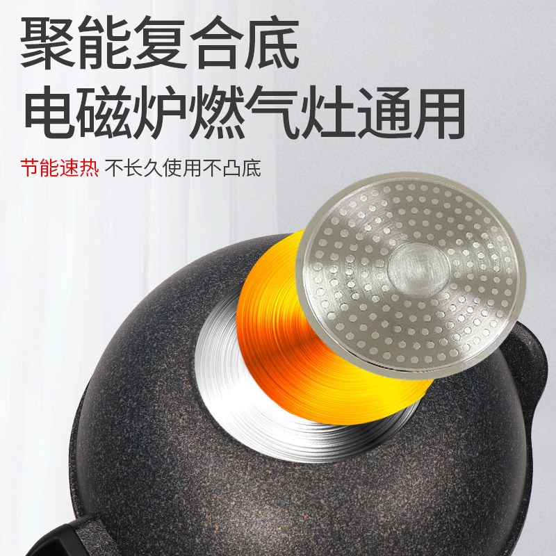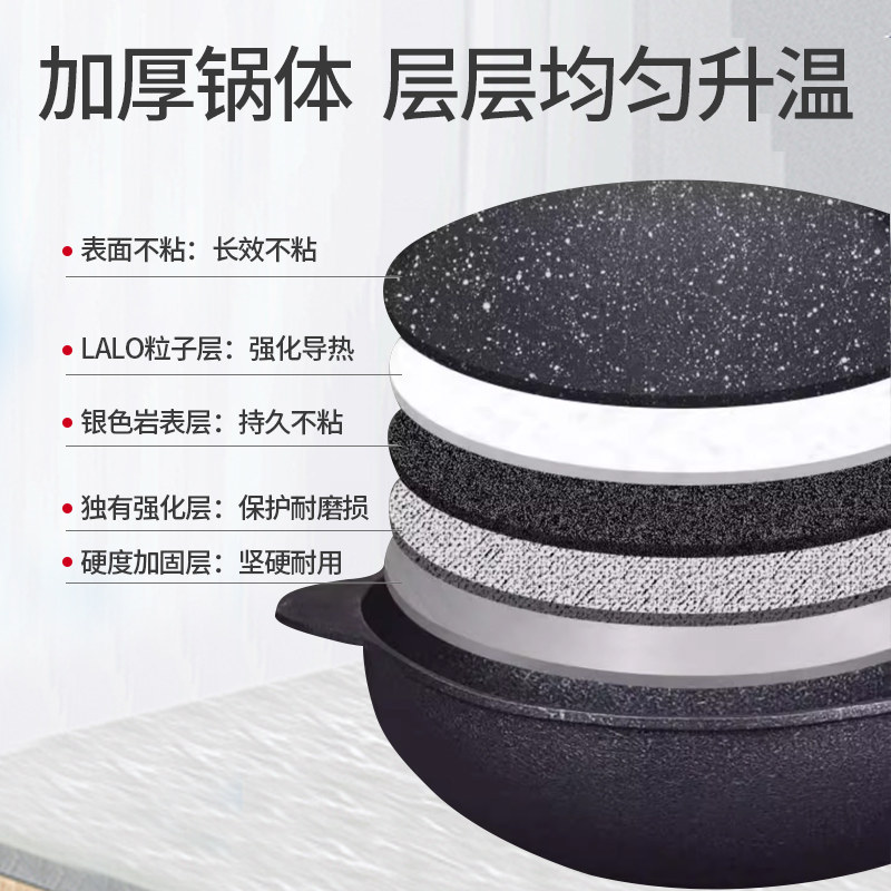 韩国麦饭石不粘锅炒锅家用无涂层炒菜锅电磁炉专用麦石锅旗舰店