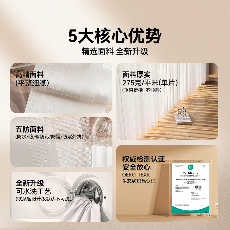 推荐理由:自由调光 单片可拆洗 出口级环保帘布