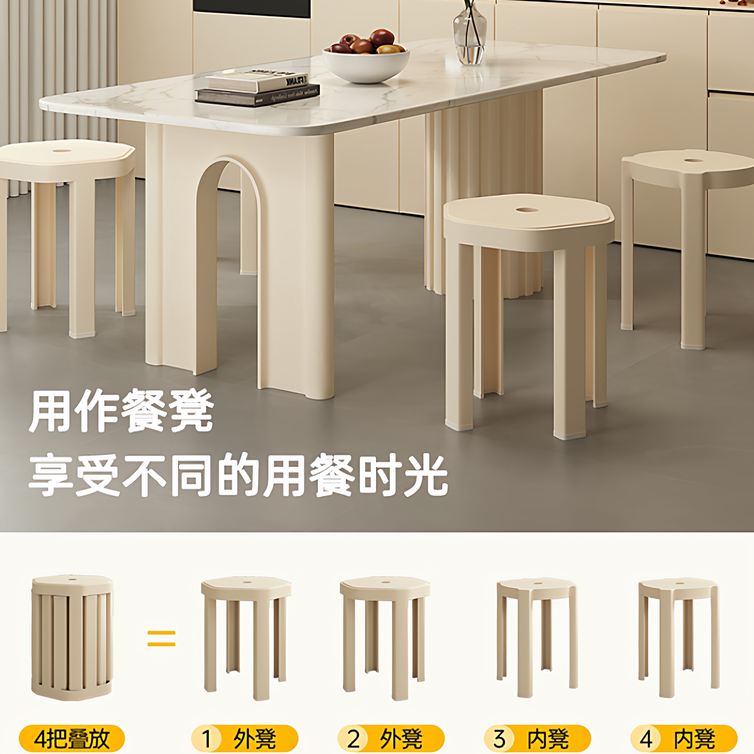 塑料加厚叠叠乐凳子家用可叠放备用圆凳可收纳折叠凳可堆叠组合凳