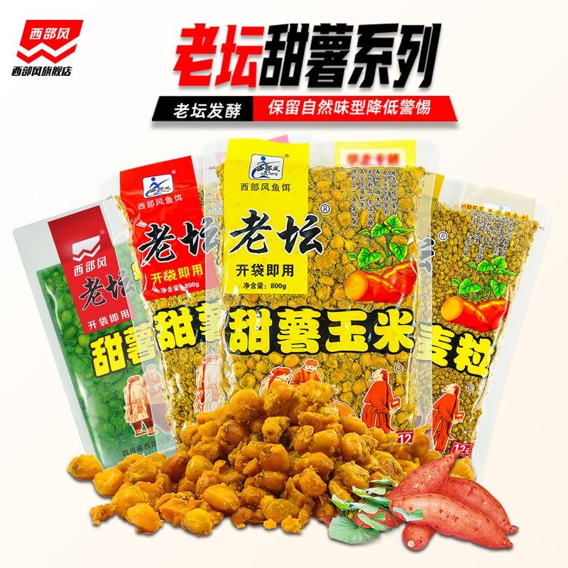 西部风老坛甜薯果酸玉米麦红薯杂粮野钓鲫鲤草青鱼打窝料钓鱼饵料
