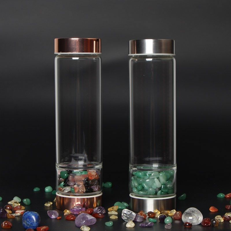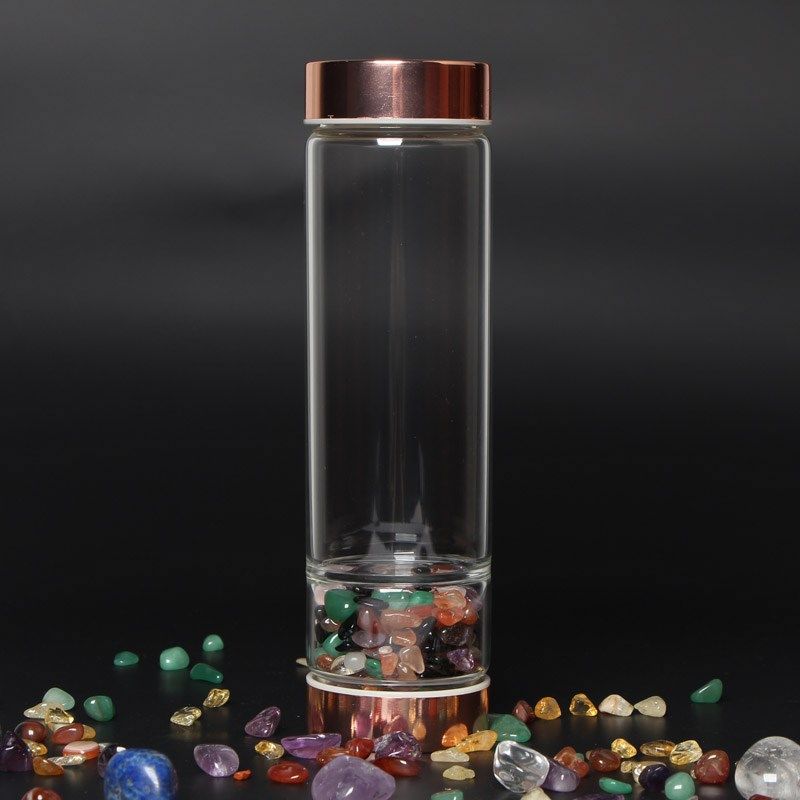 推荐理由:宝石天然水晶杯圆形子水瓶水樽玻璃杯能便携碎石透明宝茶矿原矿量