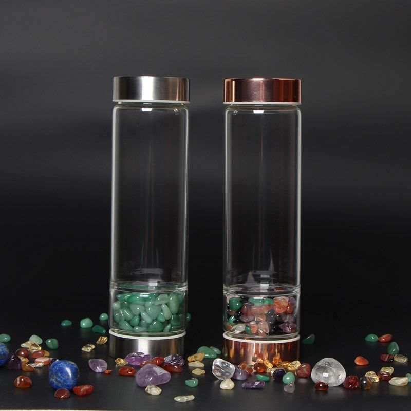 宝石天然水晶杯圆形子水瓶水樽玻璃杯能便携碎石透明宝茶矿原矿量