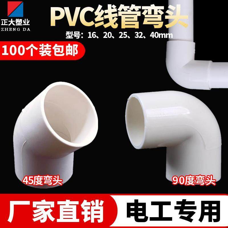 电工阻燃电线 线管弯头PVC管件配件接头16 20 4分 6分穿线 线管90