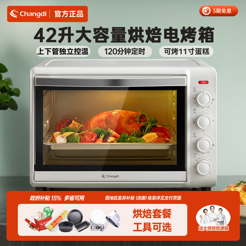 长帝电烤箱家用新款42升大容量多功能全自动披萨蛋糕烘焙小型烤箱