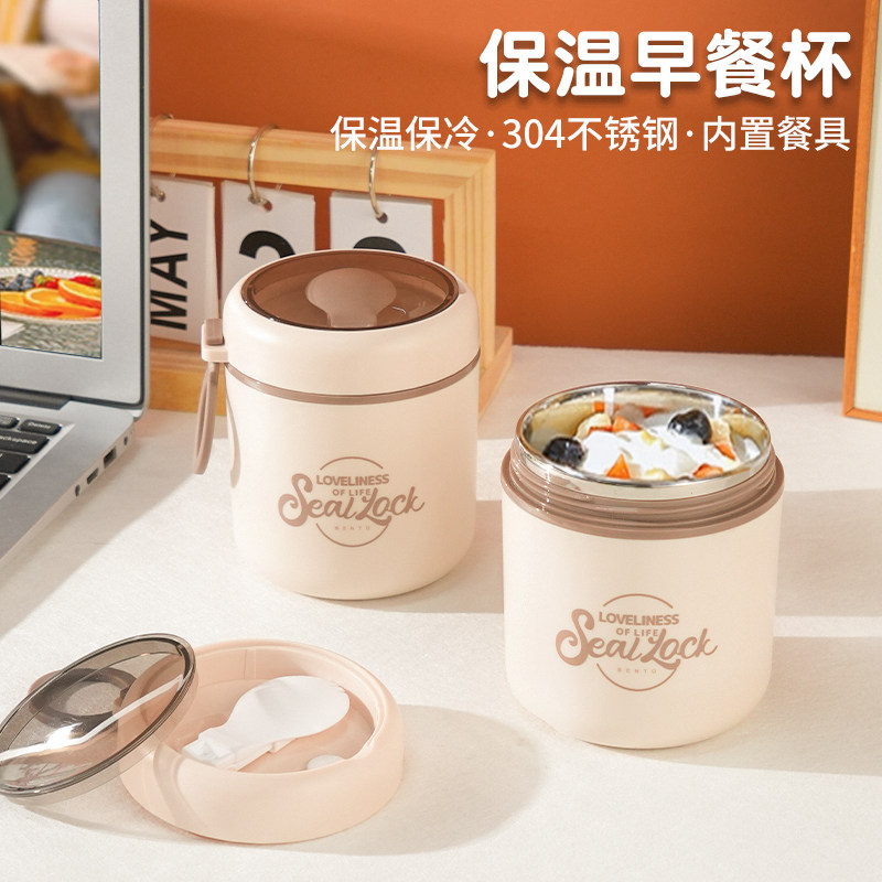 杯子早餐杯豆浆杯外带燕麦杯带盖勺粥杯隔夜酸奶麦片杯牛奶杯汤壶
