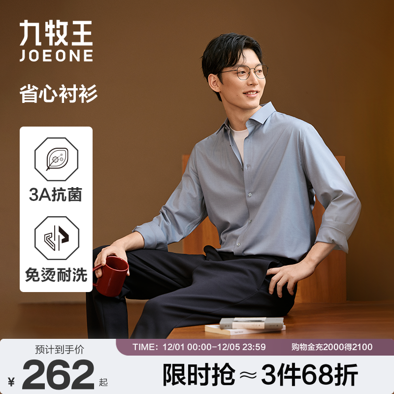 【免烫抗菌】九牧王男装莫代尔衬衫2025秋季新款防皱男士长袖上衣