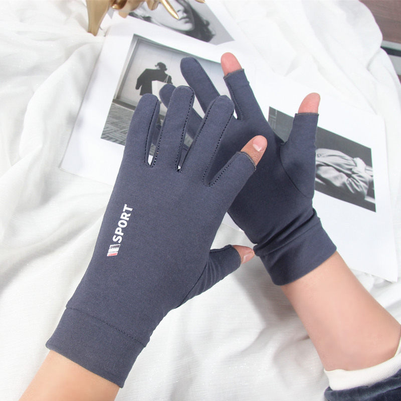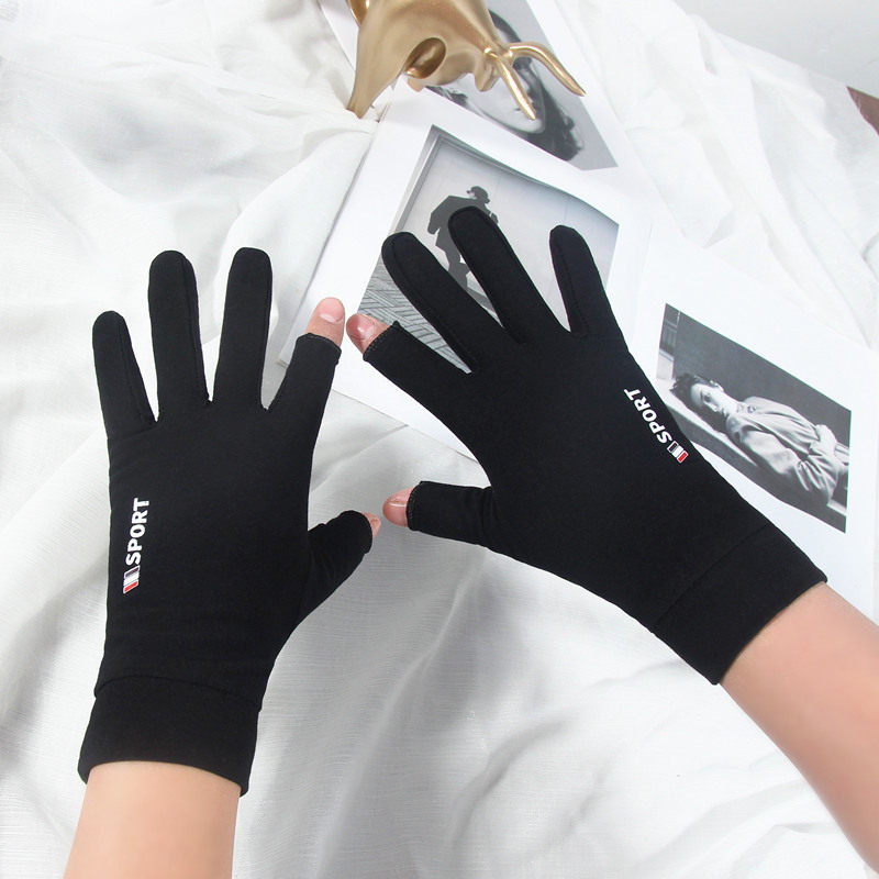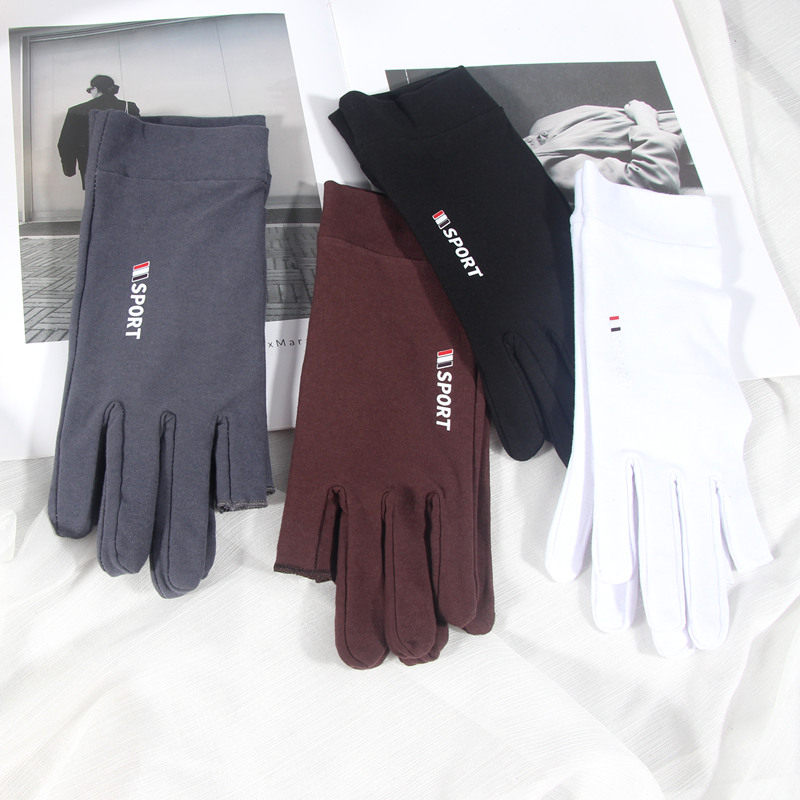 推荐理由:防晒手套男士纯棉薄款户外开车外卖骑行露指钓鱼司机白色吸汗夏季