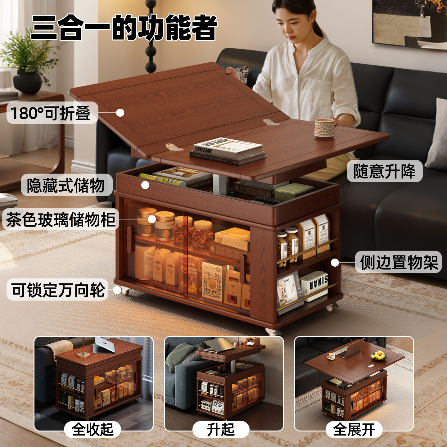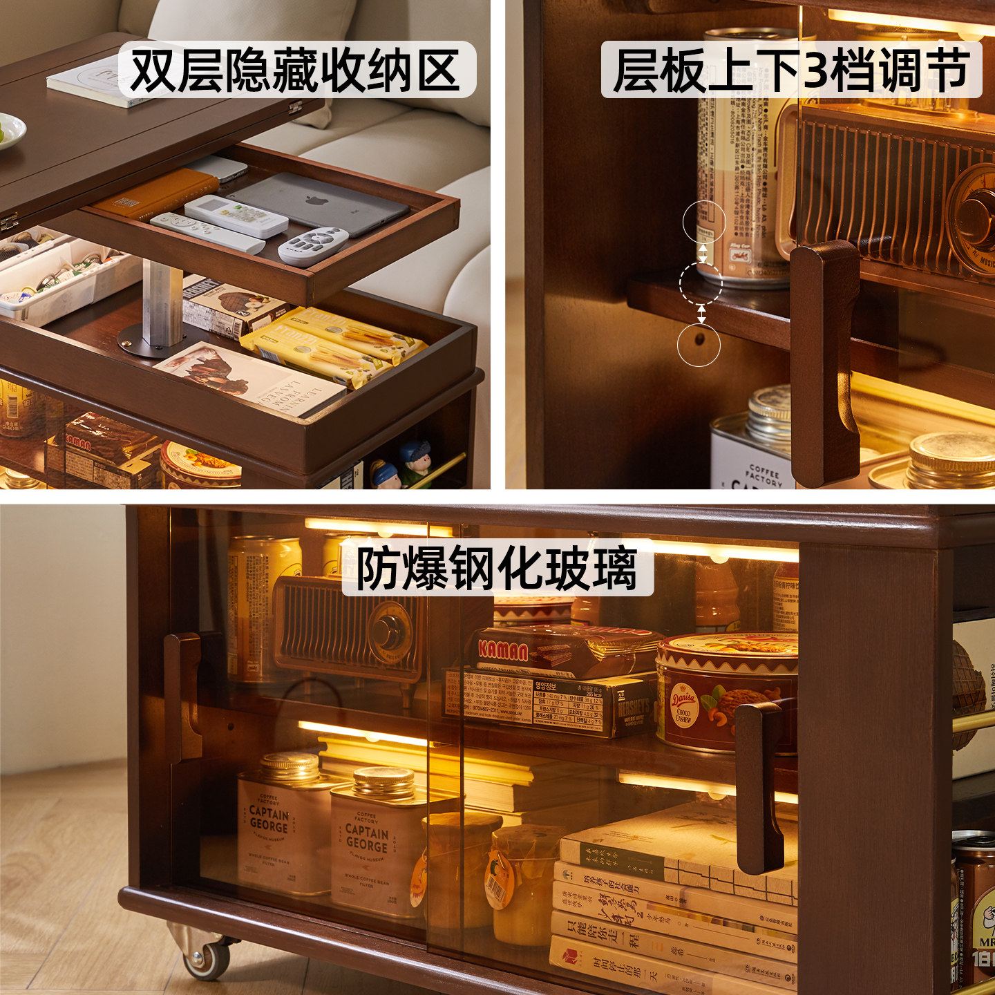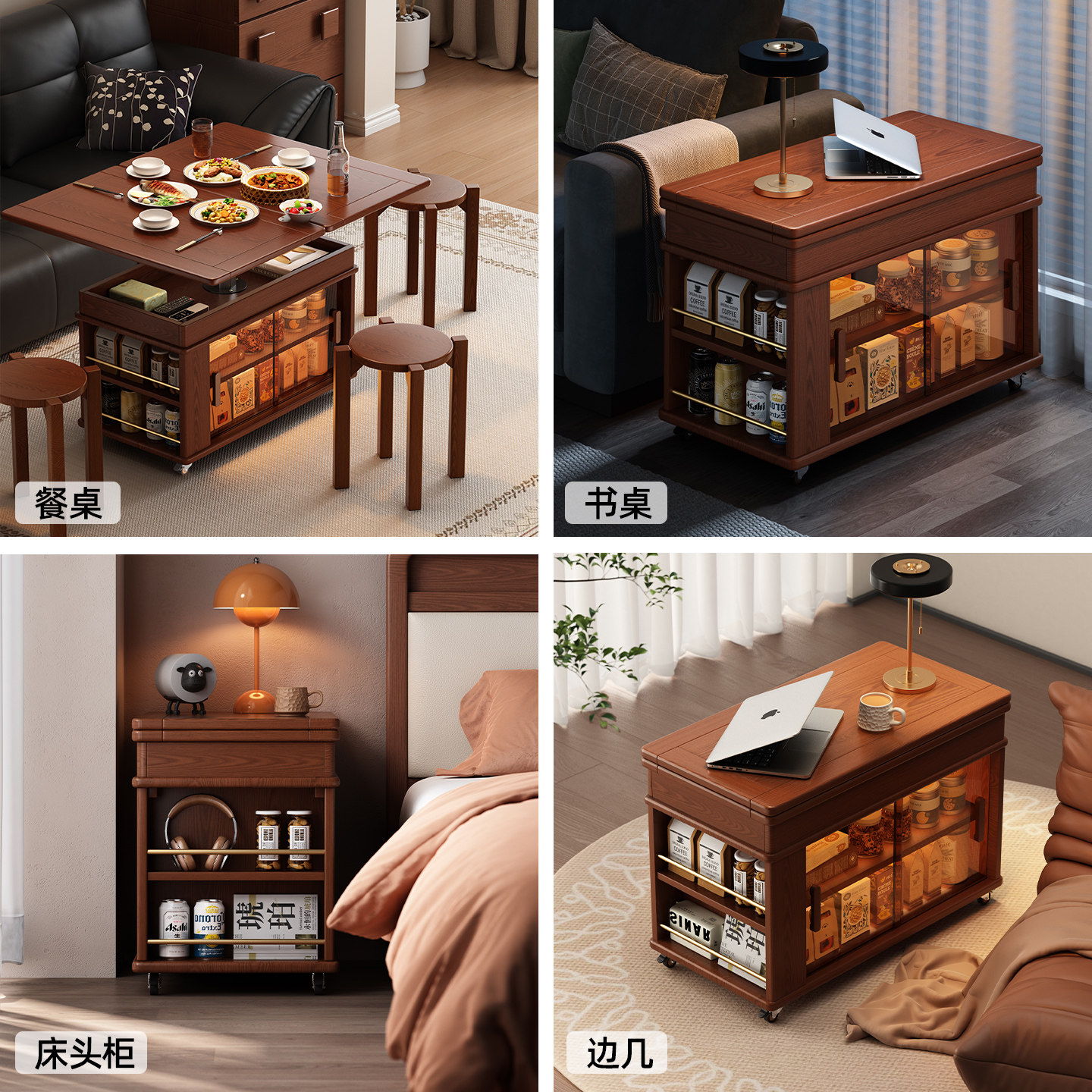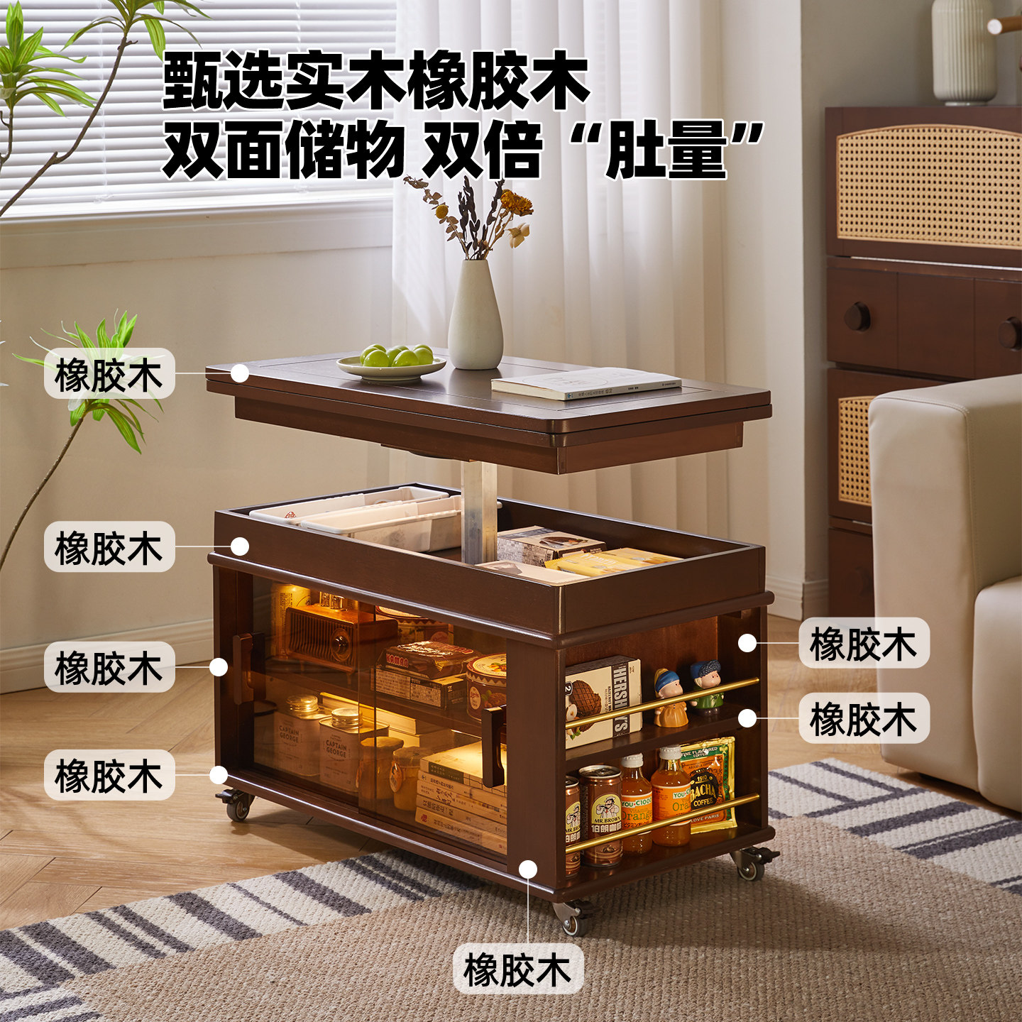 家逸可移动折叠茶几实木升降茶几客厅家用沙发边几小户型边柜茶桌