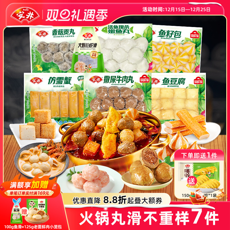 安井 火锅食材不重样7件牛肉丸虾滑鱼籽包豆腐香菇贡丸雪蟹鱼丸子