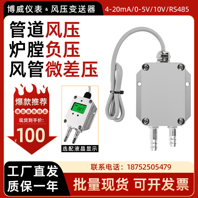 推荐理由:风压变送器数显微差压传感器风管压力炉膛负压空调风机管道微压差