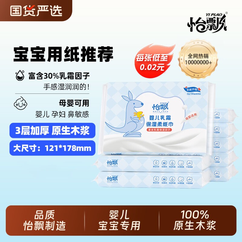 怡飘婴儿专用柔纸巾乳霜纸宝宝保湿云柔巾30抽小包纸巾母婴柔润