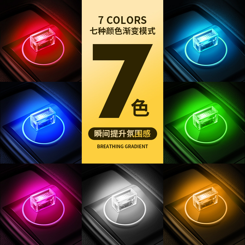 汽车车载氛围灯usb气氛灯七彩渐变车内免接线装饰用品摆件高级感