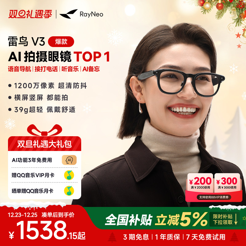 推荐理由:【热销爆款丨AI眼镜】雷鸟V3 AI拍摄眼镜大款 无线智能眼镜蓝牙音频智能眼镜无线耳机语音操控镜架款