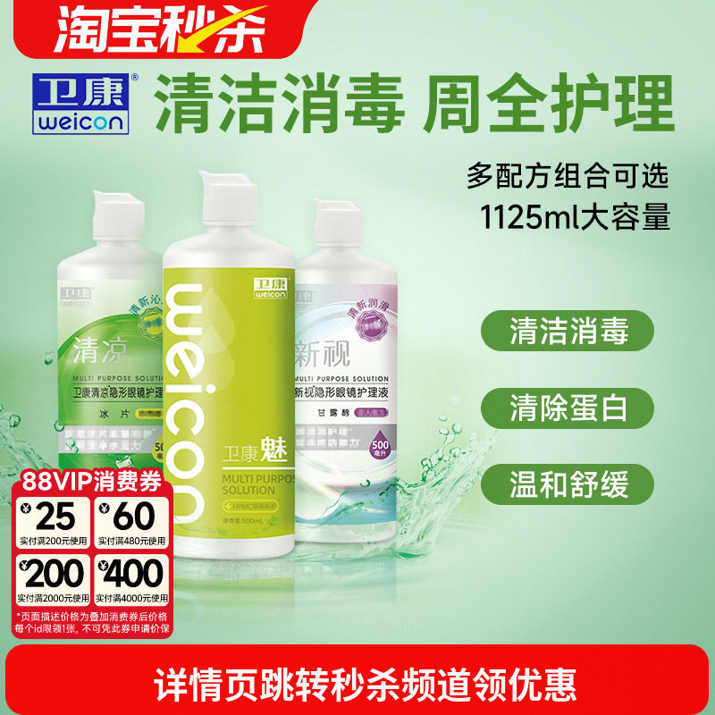 卫康隐形眼镜美瞳护理液新视魅大小瓶清洁除蛋白润滑消毒清凉正品