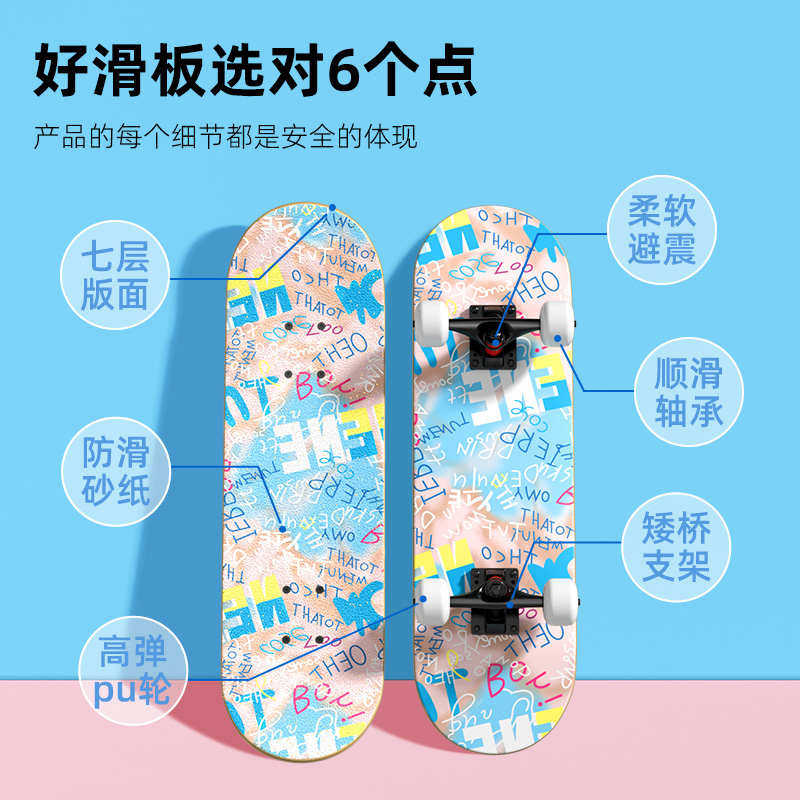 小童滑板 2-6岁72*20cm儿童宝宝女童刷街动作专业初学者双翘滑板