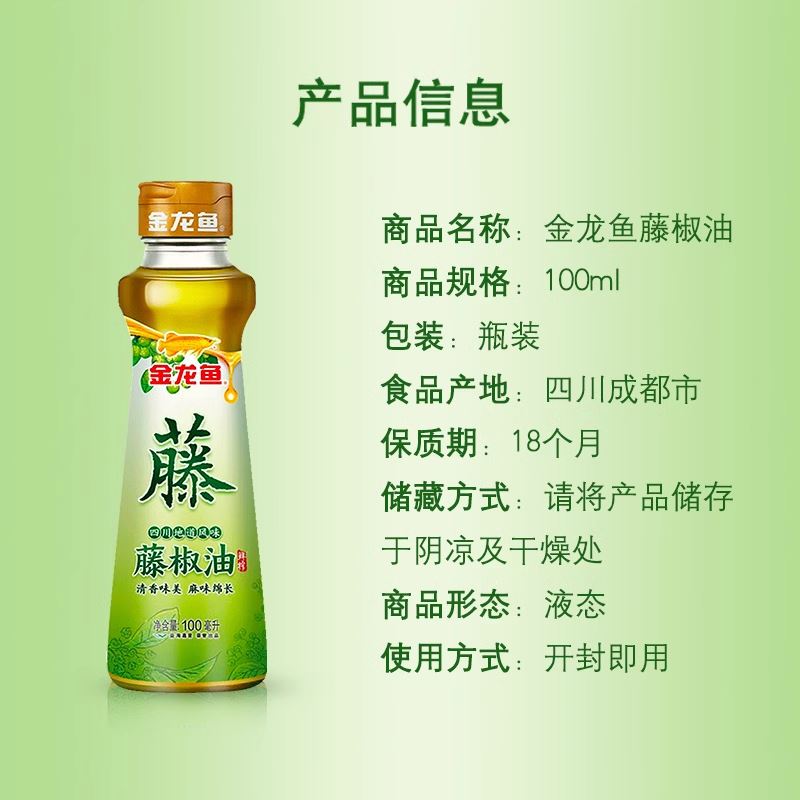推荐理由:金龙鱼调味油藤椒油100ml*2瓶火锅凉拌调味四川特产清香麻椒麻油