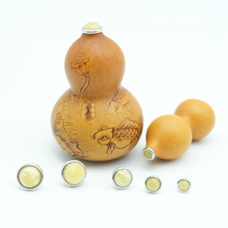 推荐理由:文玩葫芦镶口配饰S925银镶嵌蜜蜡创意国风手把件塞子盖帽高档饰品