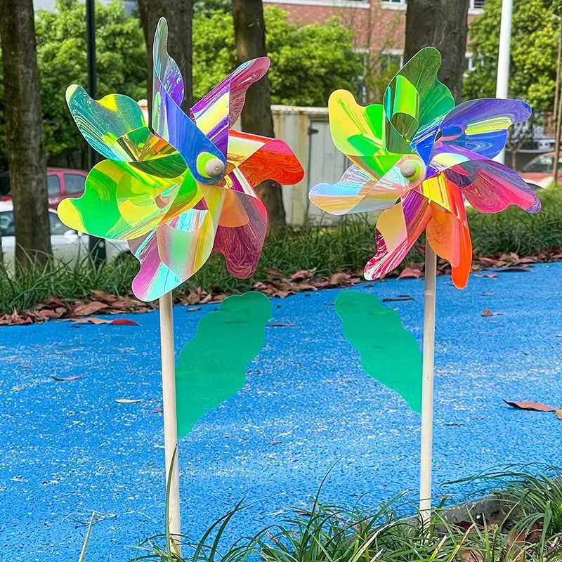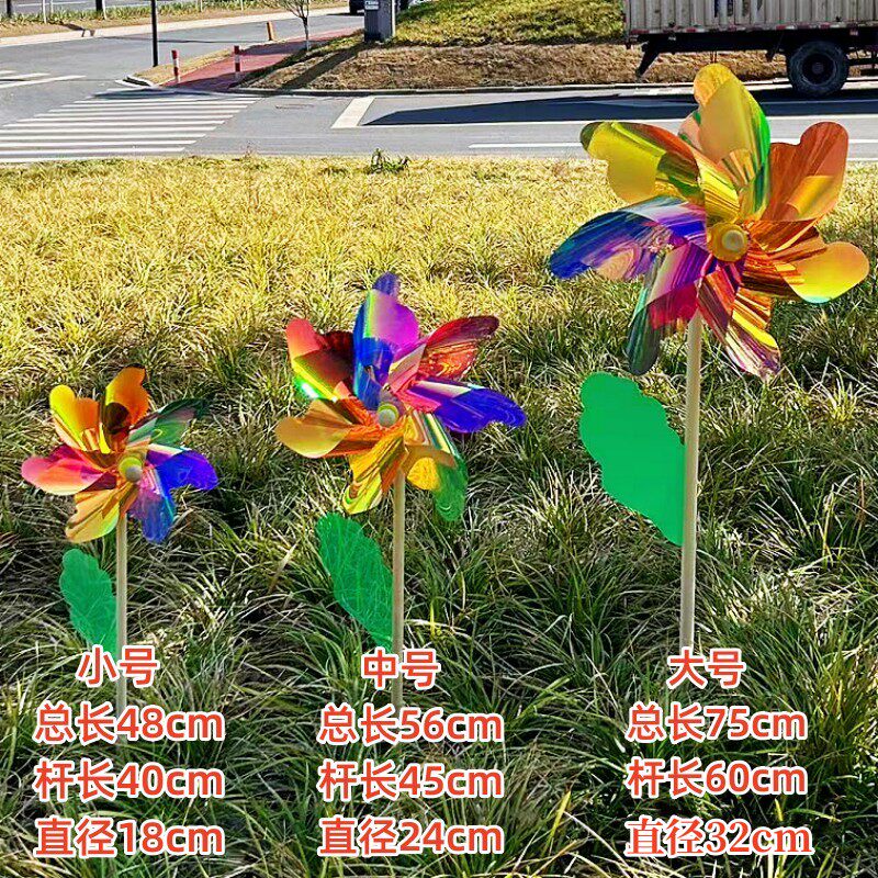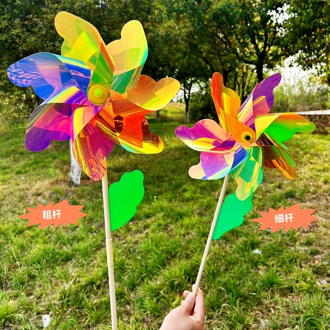 网红新款大号镭射炫彩木杆风车儿童玩具户外春游道具景区公园摆摊