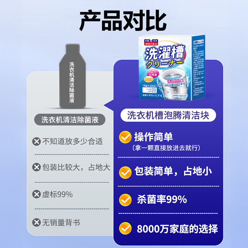 洗衣机槽清洗剂清洁剂污渍神器泡腾片爆氧粉滚筒专用强力除垢杀菌