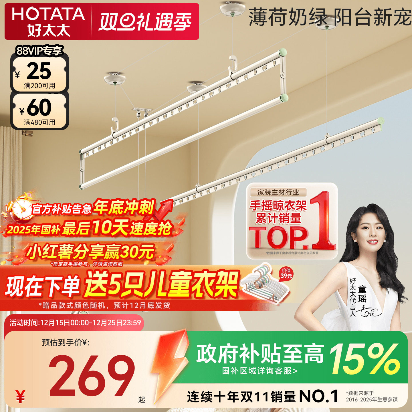 【政府补贴】好太太晾衣架手摇升降晒衣杆双杆家用阳台手动凉衣架