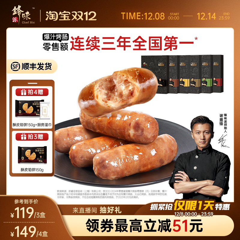 锋味派官方烤肠肉肠纯肉香肠地道台式火腿肠黑胡椒肠芝士玉米热狗