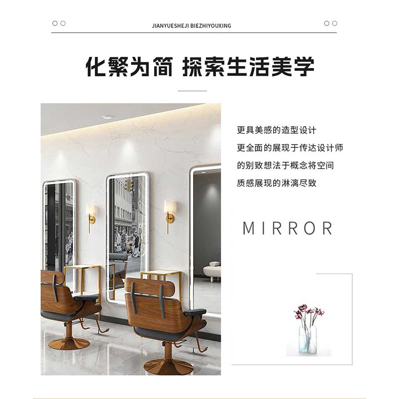 美发镜子发廊专用落地理发店镜台网红带灯LED单面发光挂墙智能镜