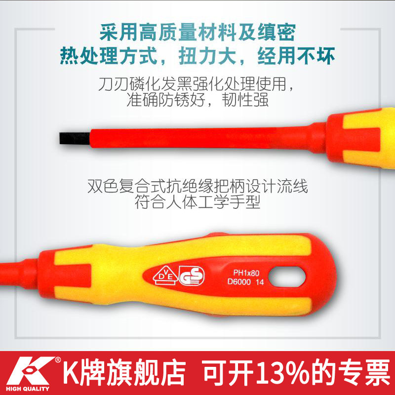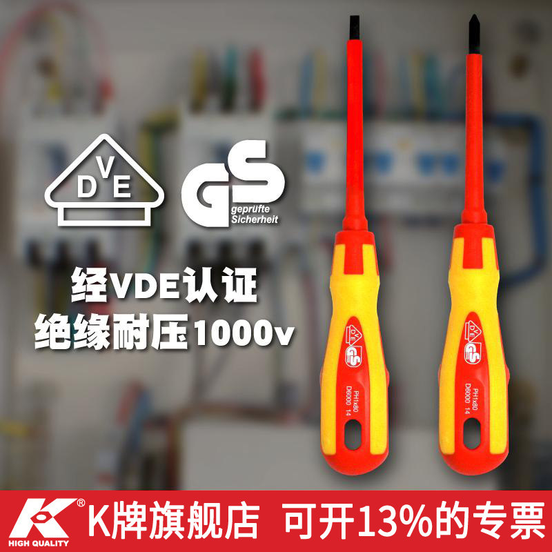 K牌绝缘螺丝刀十字一字VDE认证多功能电工维修专用工具螺丝批