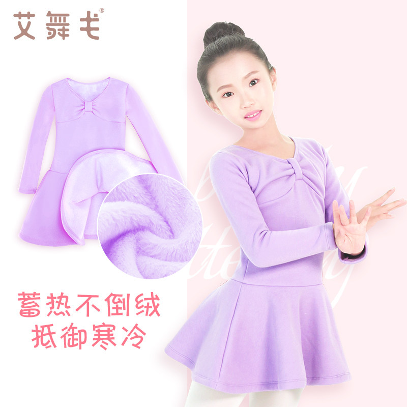 艾舞戈舞蹈服儿童女秋冬芭蕾舞裙练功服长袖加绒跳舞裙中国舞服装