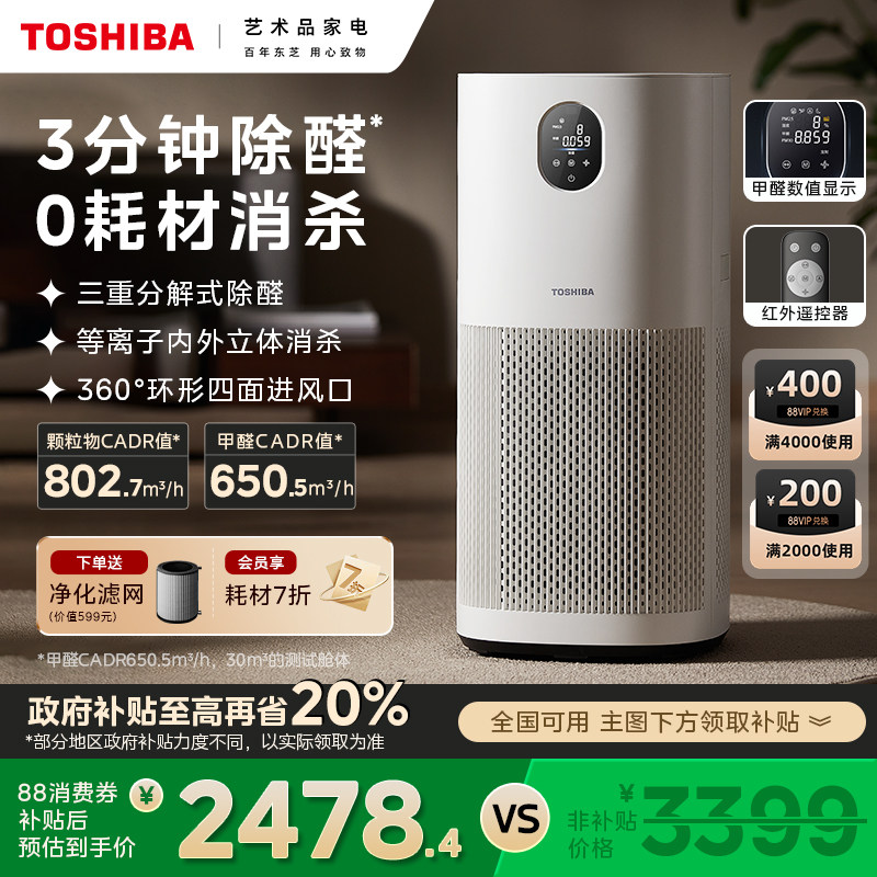 东芝大白梨空气净化器家用除甲醛消毒机加湿一体去甲苯除烟味过敏
