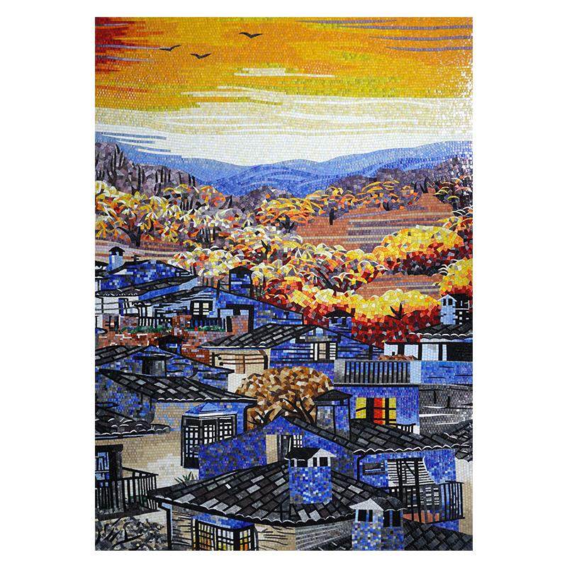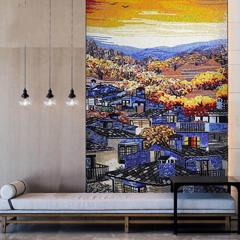 墙贴山水油画马赛克背景墙玻璃玄关拼图客厅剪画壁画瓷砖装饰瓷砖