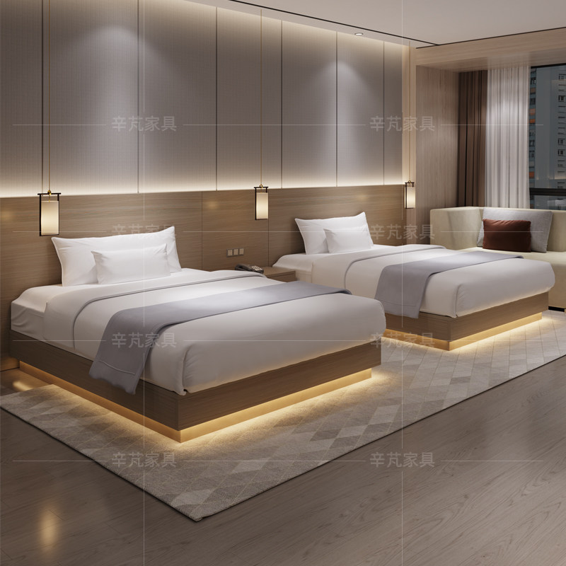 酒店专用床宾馆家具标间全套五星级全季定制床箱箱民宿客房双人床