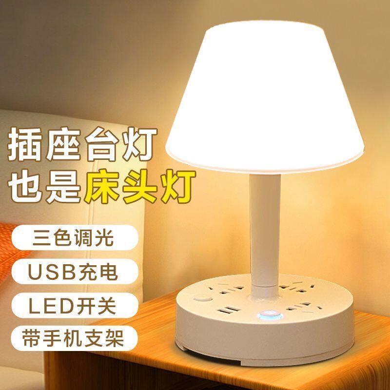 【推荐】多功能LED台灯卧室创意氛围床头灯柔光护眼电源USB插座
