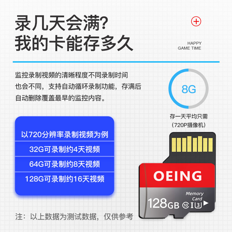 推荐理由:监控内存存储卡128G高速tf存储卡64g云台摄像头tf闪存卡fat32专用