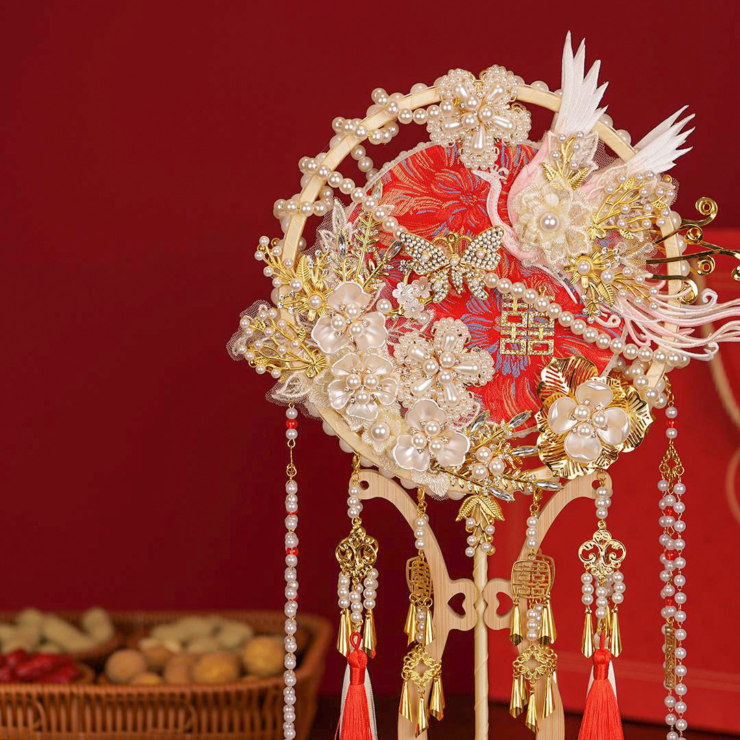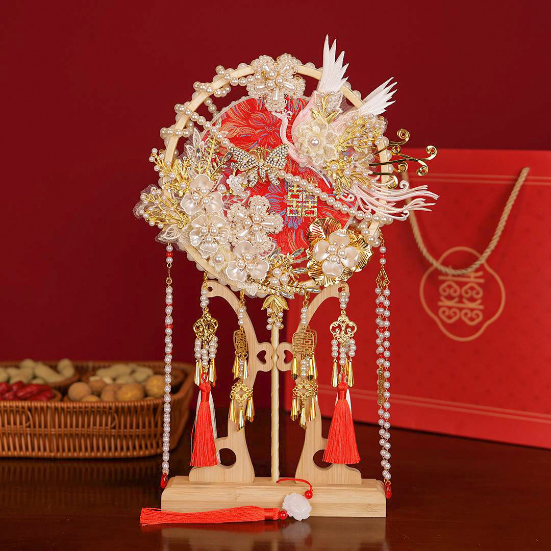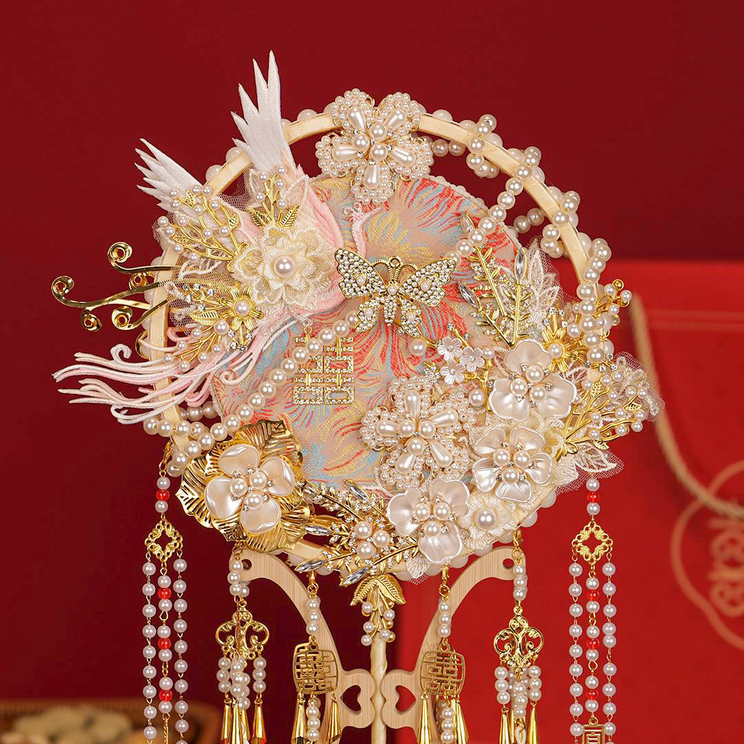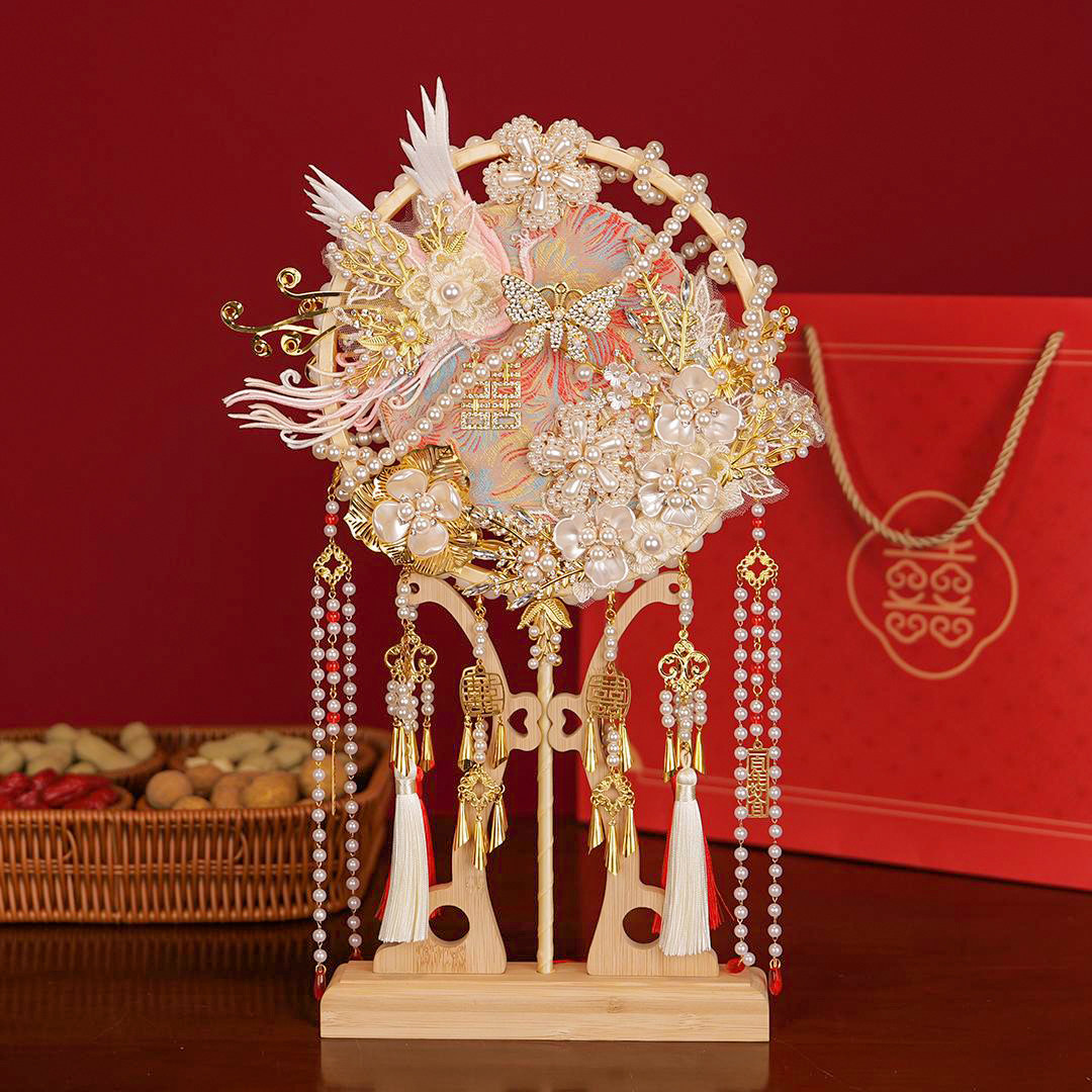 双面团扇新娘结婚diy材料包成品高级喜扇婚礼秀禾服扇子新婚礼物