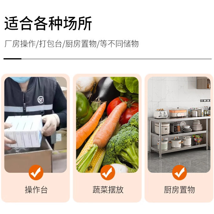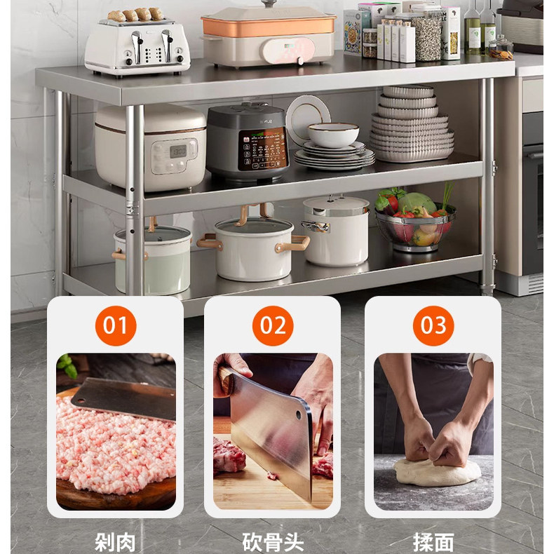 三层不锈钢加厚工作台厨房切菜剁肉操作台烘焙案板饭店商用打包台